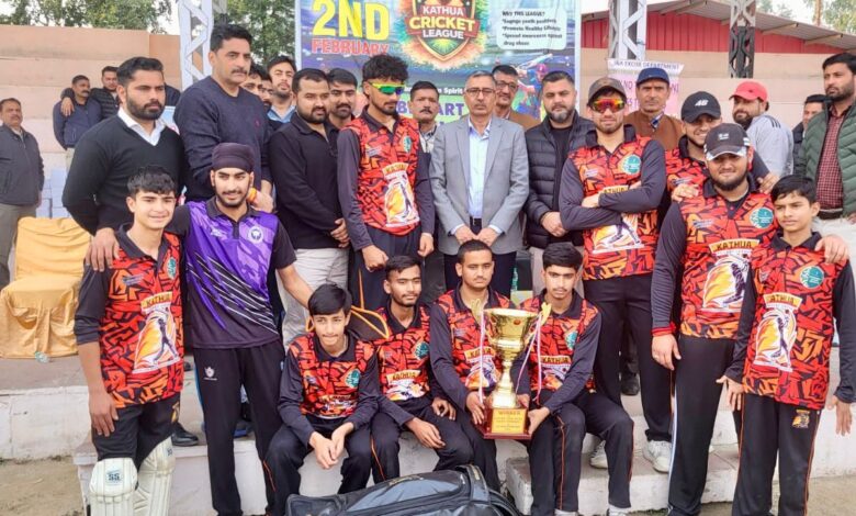 कठुआ, 09 फरवरी: आबकारी विभाग और जिला प्रशासन कठुआ के सहयोग से आयोजित जूनियर क्रिकेट चैंपियनशिप का समापन सोमवार को खेल स्टेडियम कठुआ में उत्साहपूर्ण माहौल में हुआ। फाइनल मुकाबले में चडवाल टीम ने शानदार प्रदर्शन करते हुए खिताब अपने नाम किया।