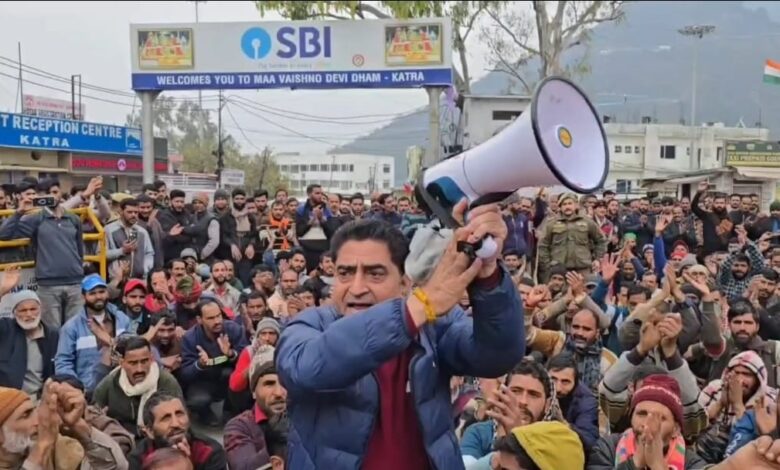कटरा (रोहित शर्मा)। श्री माता वैष्णो देवी मार्ग पर घोड़ा, पिट्ठू और पालकी के रूप में कार्य करने वाले मजदूरों ने अपनी मांगों को लेकर रविवार को जोरदार प्रदर्शन किया। मजदूरों के इस जुलूस की अगुवाई उनके नेता भूपेंद्र सिंह जमवाल ने की।